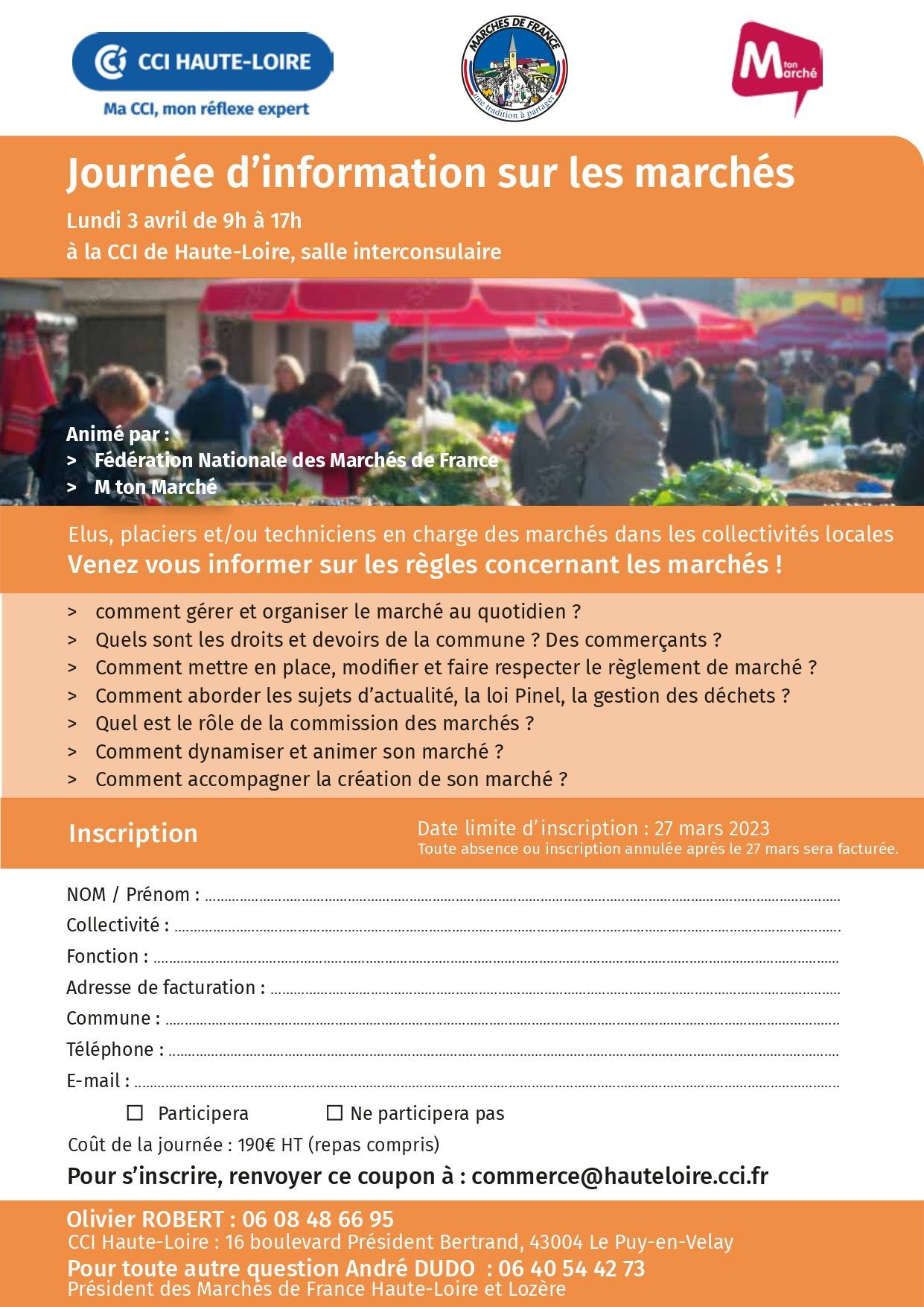 A cet effet, sur la base d’une expérience réussie dans le département de l’Ile de la Réunion, nous avons proposé, lors de nos assises nationales à Foix, un programme d’initiation, d’information et de formation de l’ensemble des acteurs qui contribuent au fonctionnement et à la vitalité des marchés intitulé :