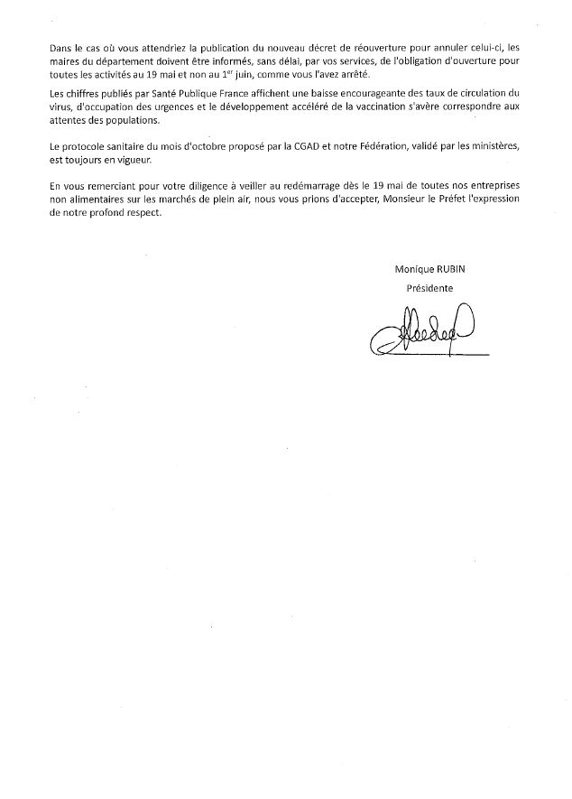 Courrier de la fédération envoyé au préfet de Haute-Loire le 10/05/2021
